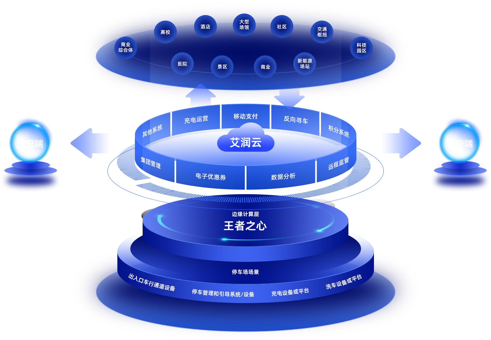 艾润停车王研发的“艾润云”平台,适用于和停车场管理、服务有关的业务,包含停车场出入口管理、充电桩管理、车位引导管理、洗车管理等。
